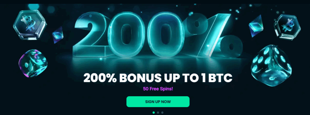 - 200% Welcome: Up to 1 whole Bitcoin plus 50 free spins